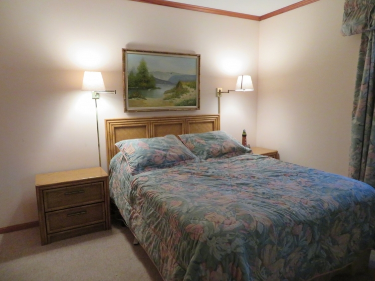 Lower level bedroom # 6 has queen-sized bed, dresser, and TV, sleeps 2