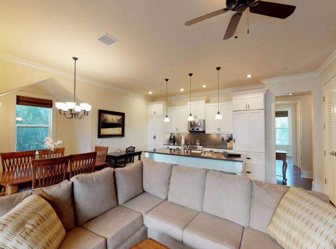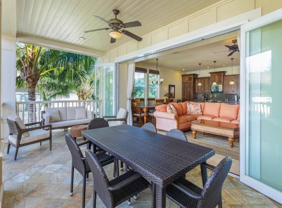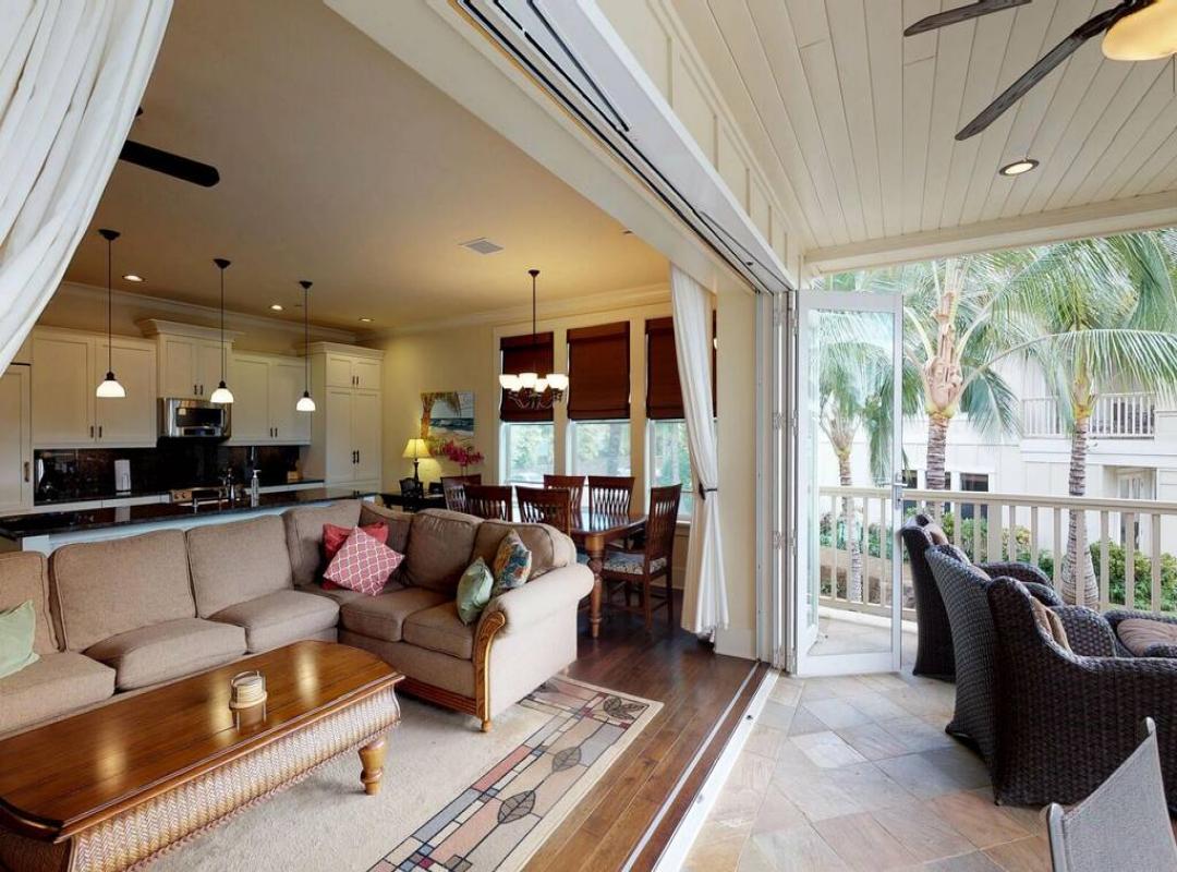 My family, consisting of eight adults and two children, rented a four bedroom/three and a half bath penthouse condo for an eight night vacation in late March/early April. We had a wonderful time. The condo was spacious, well appointed and very well equipped. I was a little concerned about having so many people under one roof. My concern was unfounded. The four bedrooms are interspersed throughout the condo in a way that provides separate quiet space for each room and the four lanais virtually double the total living space of the unit. In fact, the entire wall of the main living area opened up to the largest lanai which had a large dinner table and a small sitting area. This was my favorite feature of the condo, as all ten of us could easily sit and converse as a group without feeling like we were right on top of one another. We loved the pool and the short walk to the beach. While the island has a lot to offer, we didn’t have to venture far from the condo to have a good time. We will be back!